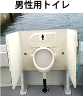 操舵室内にいすが用意されています。ポットと電子レンジもあるので、ご自由にご利用ください。 | 男性用トイレ。 | 女性も安心してお使いください。 | 操縦席の後ろに座席があります。 | ||||